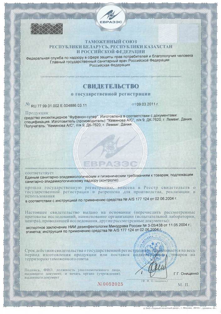 Мы используем только сертифицированные препараты, прошедшие государственную регистрацию. Вы можете ознакомиться с документами на инсектициды и фунгициды, которые применяют наши мастера.